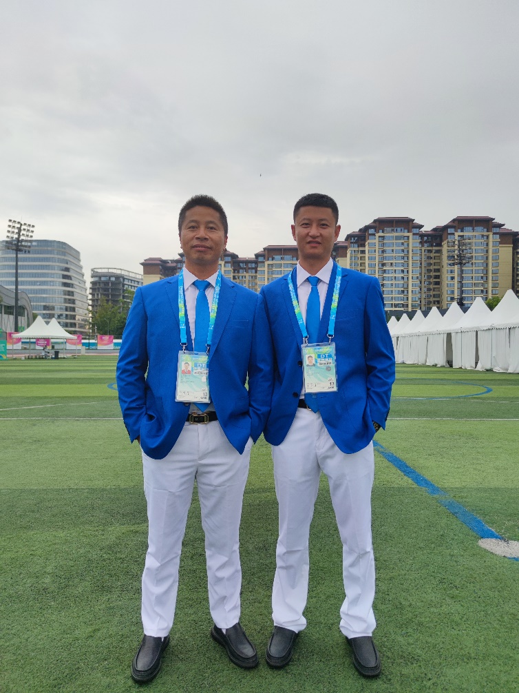 8月1日比赛正打响,三位老师各司其职。侯金成和李贵春作为热身场地裁判员,积极与其他裁判员协同配合,组织来自世界各地的运动有序进行热身活动。热身场地是运动员开始比赛的“第一站”,裁判员与运动员、教练员接触最多,是向世界展示中国形象的重要窗口,裁判员要给各国教练员、运动员留下好的印象,确保运动员安全、为他们提供规范的比赛环境。