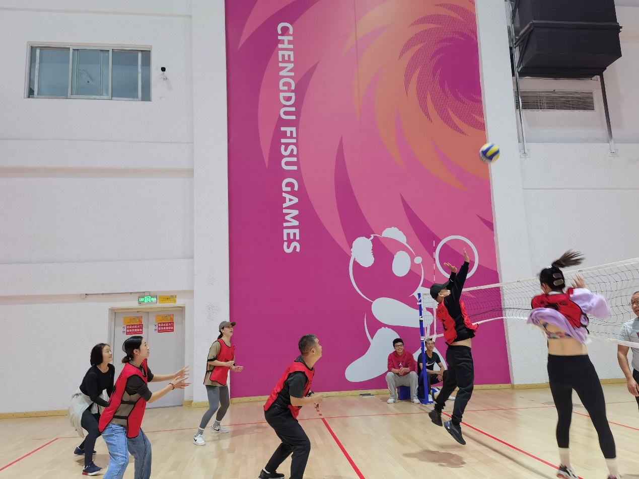 10月26日上午,体育学院全体教职员工82人在学院分工会的组织下于9:30准时到达体育馆气排球比赛场地。首次体验大运会比赛场馆,全体职工精神饱满、斗志高昂、步伐矫健、神采奕奕,现场气氛欢快,大家心情愉悦。经过大家的不懈努力,全体运动员都高质量的完成本次比赛预设要求,充分展现了体育学院教职工良好的精神面貌和强壮有力的身体状态。