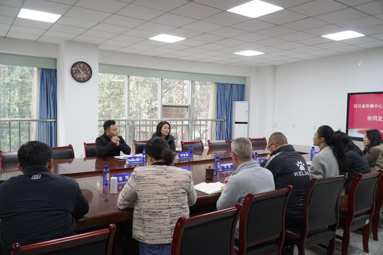 会上,王永生对体育学院发展概况、人才培养、训练竞赛等工作进行介绍。冯喆对体操运动管理中心、四川省体操协会发展规划进行介绍。双方对如何具体落实四川省体操运动管理中心与体育学院战略合作等问题开展交流沟通讨论。