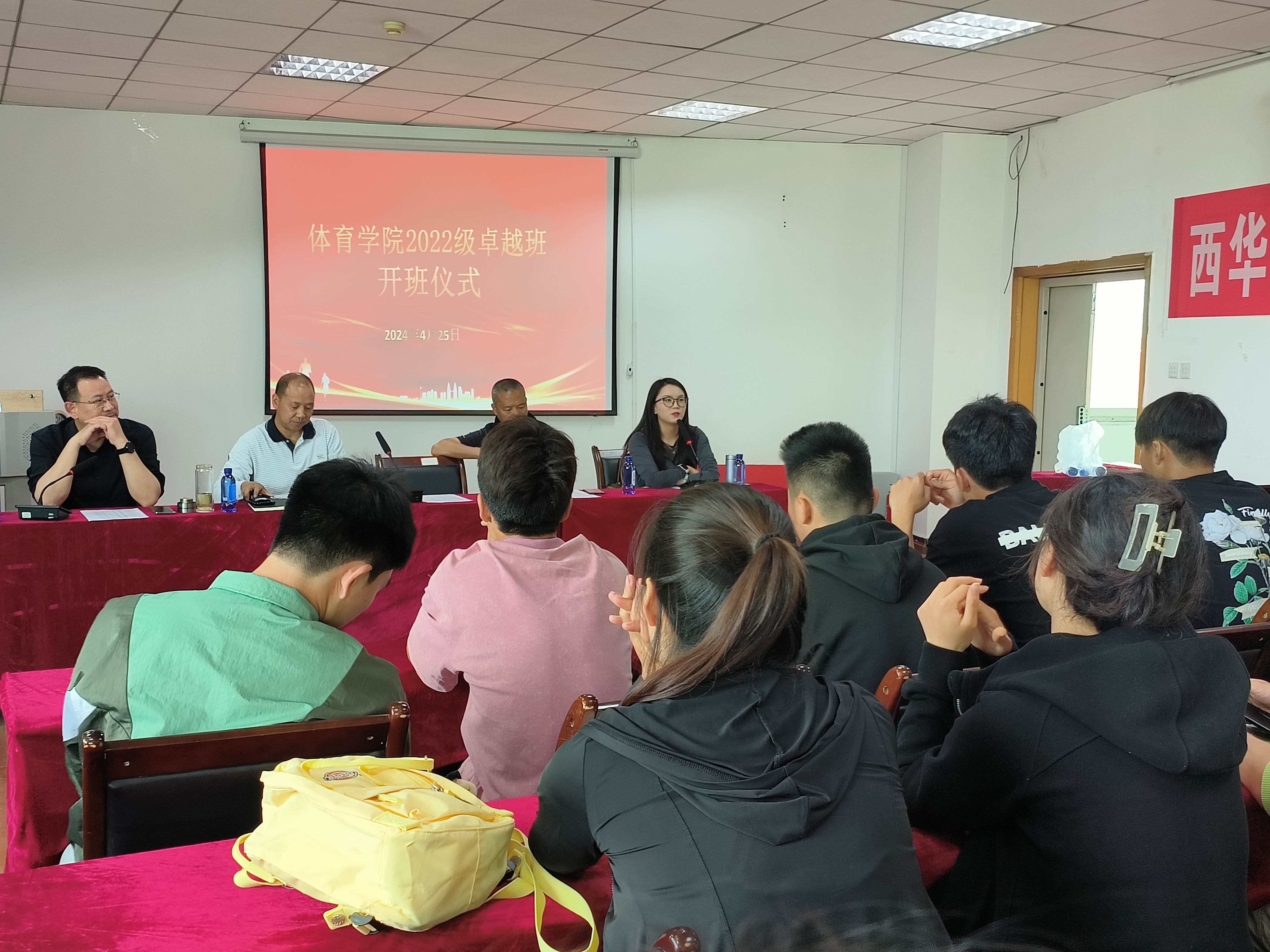 为加强对有考研意向学生的指导帮助,4月25日中午,体育学院在4C-612举办2022级卓越班开班仪式。学院领导班子全体成员、卓越班指导老师陈丽博士,2022级辅导员、学工办主任郭聪以及2022级卓越班全体成员参加了开班仪式。开班仪式由学院党委副书记钟灵波主持。