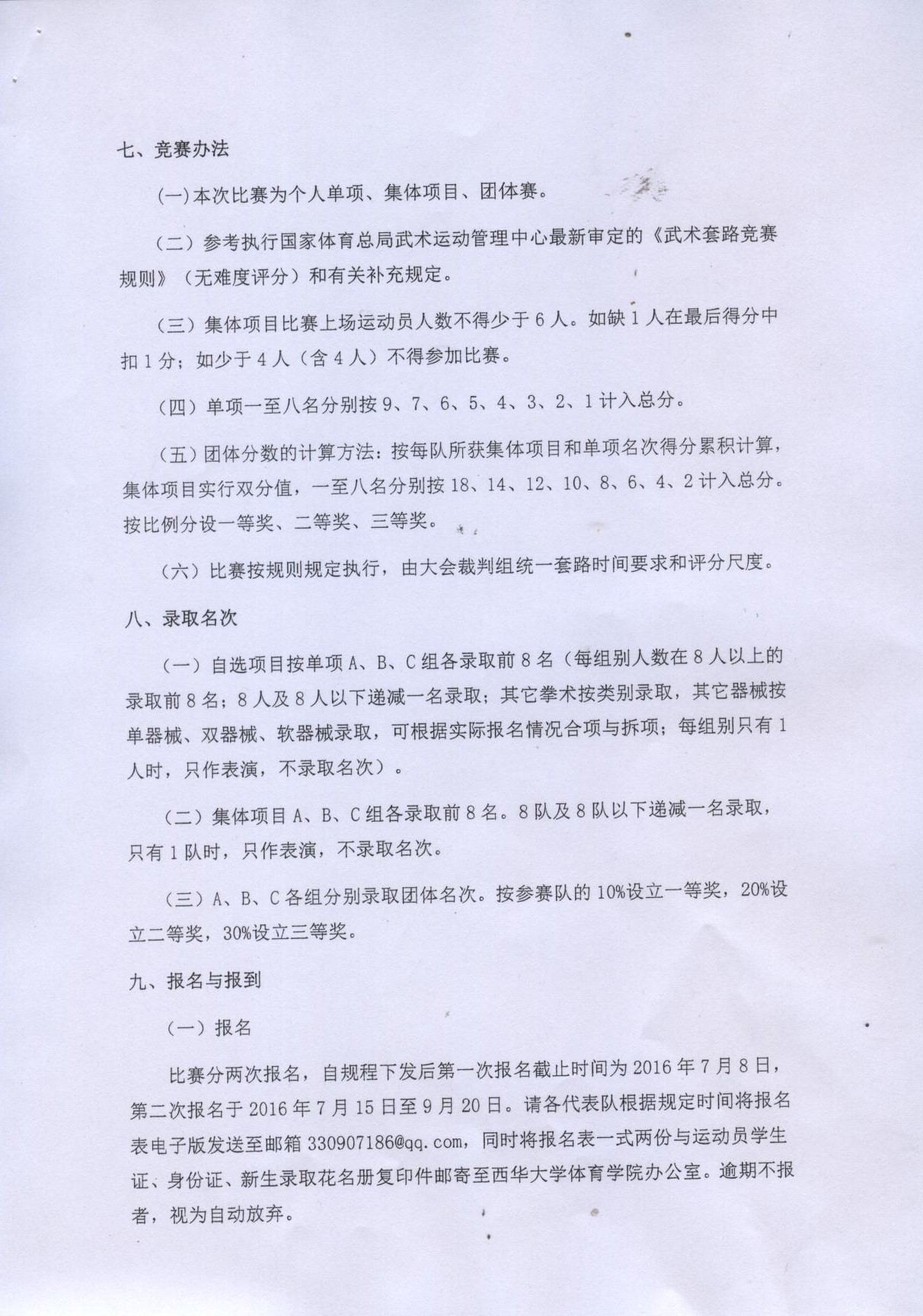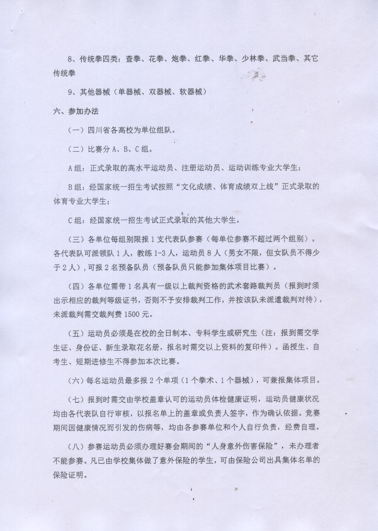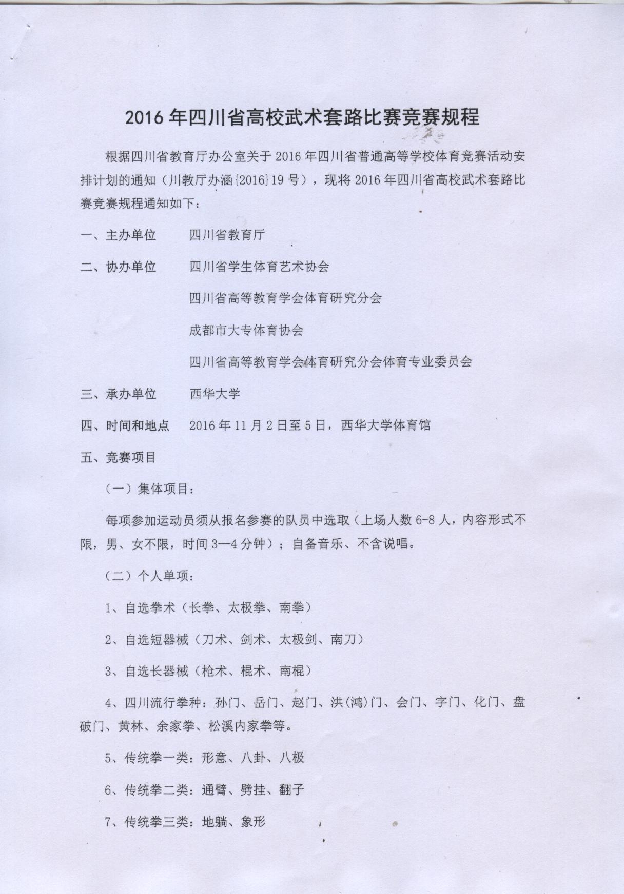 2016年四川省高校武术比赛竞赛规程