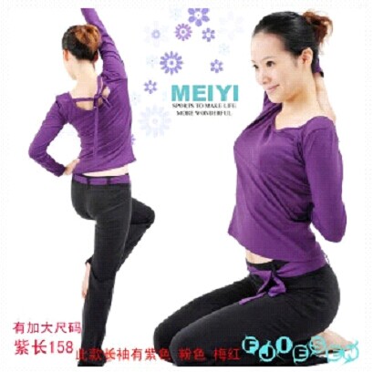 冬天紫色健美操上衣,黑色裤子