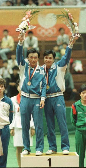陈龙灿与韦晴光获得第24届奥运会男双冠军 | |