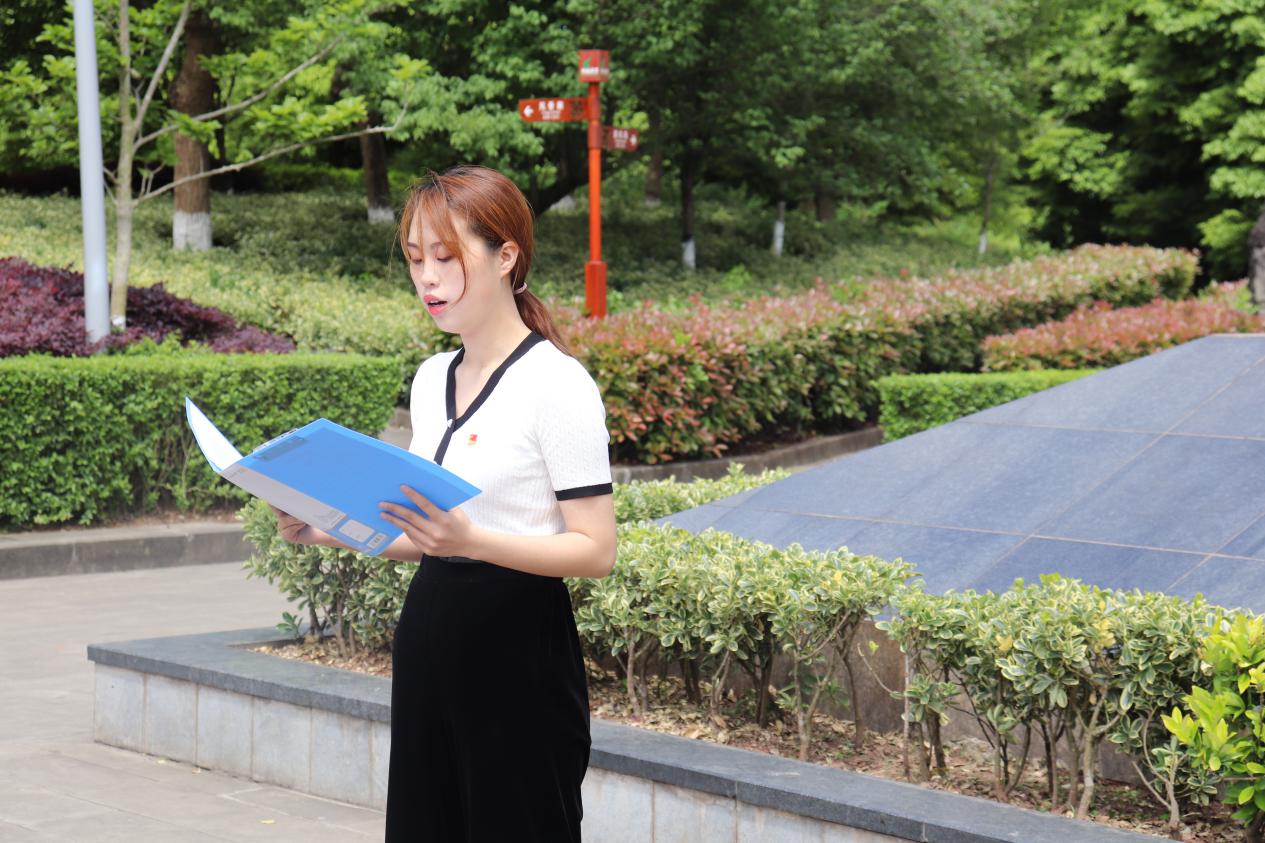 接着,六位学生党员代表用深情的朗诵将《党的赞歌》献给党的100周年华诞;全体人员合唱《没有共产党就没有新中国》,用激昂嘹亮的歌声,表达爱党爱国之情;省级优秀毕业生徐彤以《学党史、感党恩、跟党走》为主题作优秀毕业生事迹报告,她号召同学们认真学习党史,传承红色基因,坚守初心担当使命。而后,全体党员在钟灵波的带领下重温了入党誓词,全体团学干部在魏崧丞的带领下重温了入团誓词。