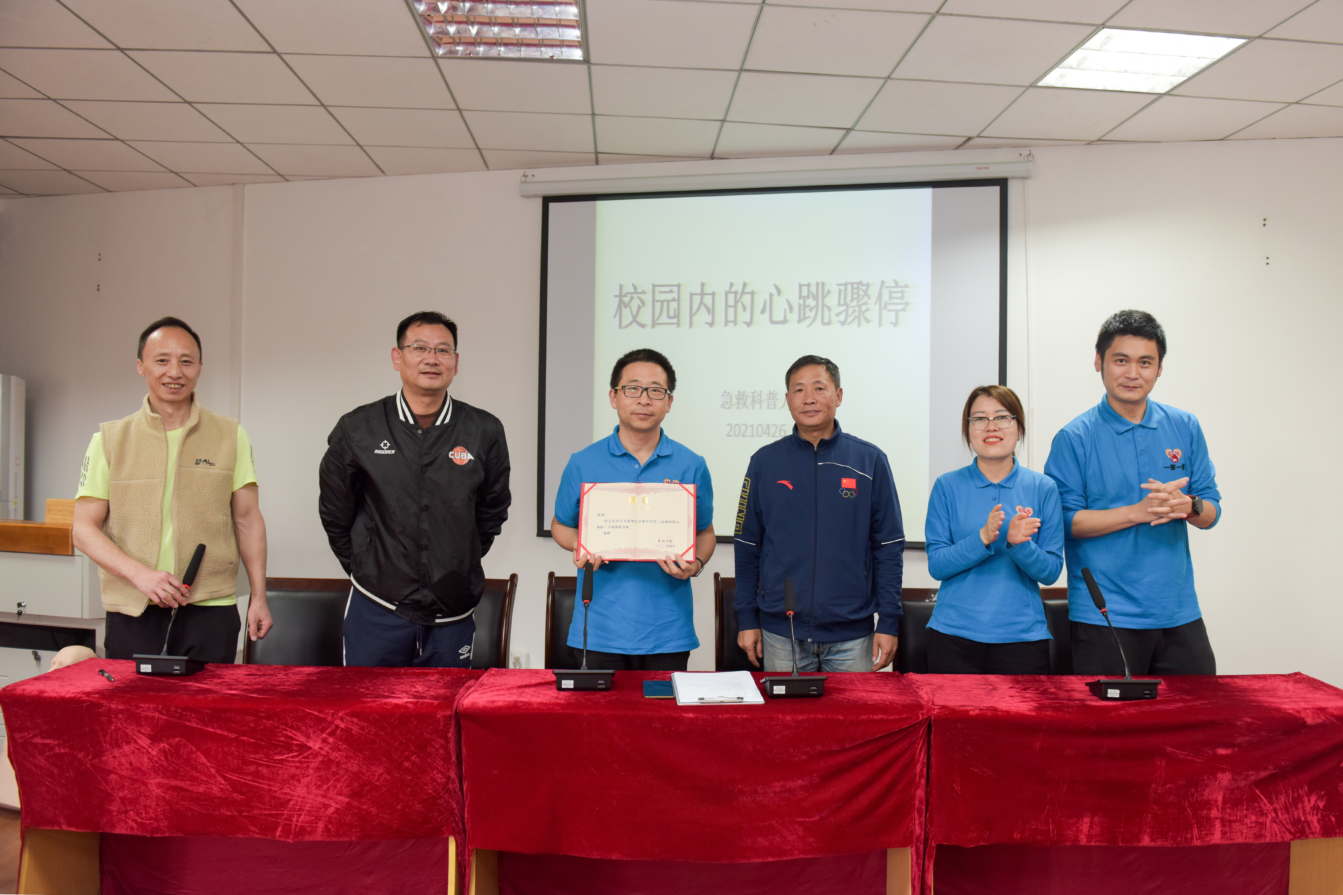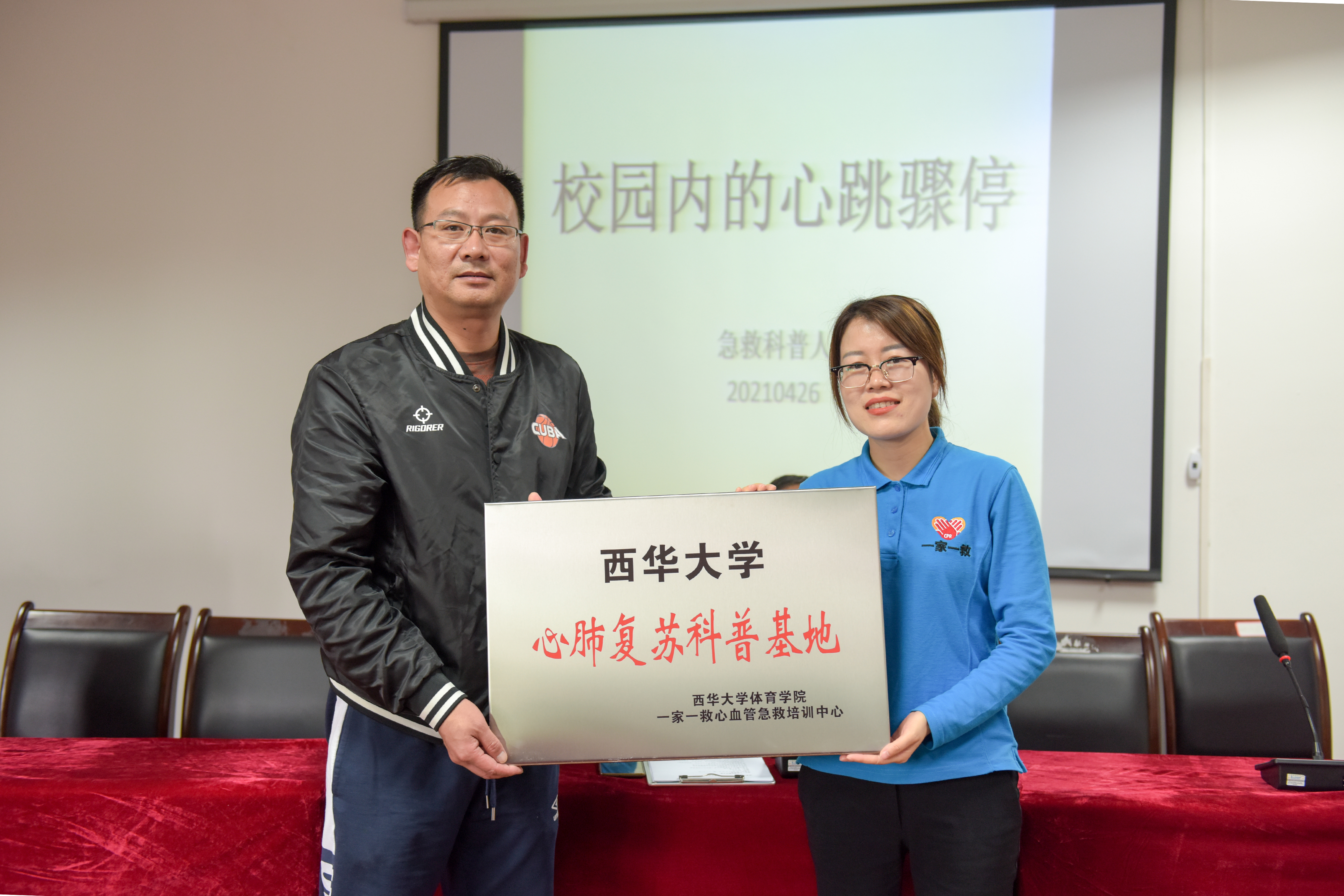 随后,“一家一救”心血管急救培训中心与体育学院进行了“心肺复苏科普基地”授牌仪式。