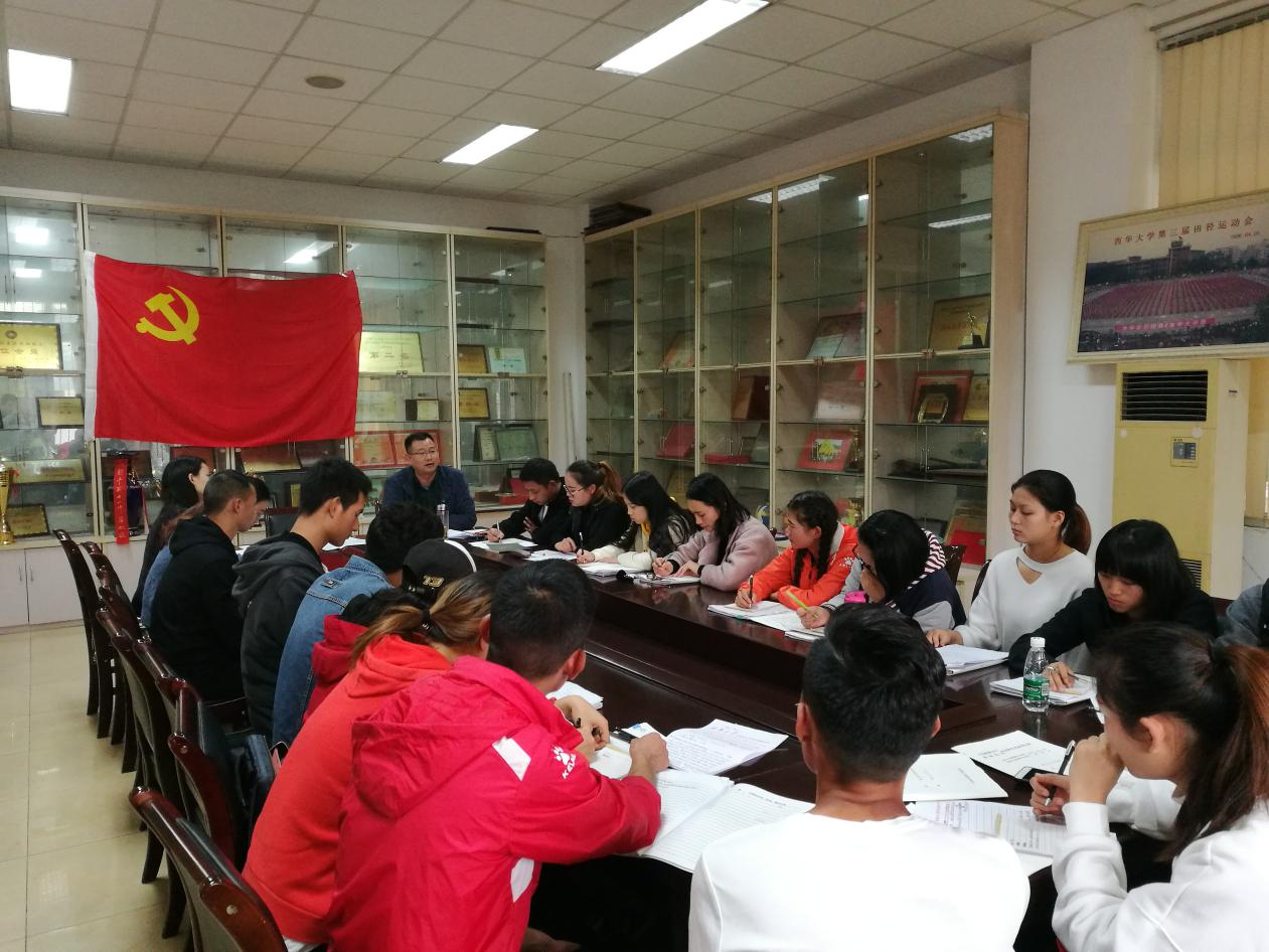11月8日下午14:30,体育学院体育系学生党支部于体育馆南会议室举行了支部发展党员大会。学院党委副书记兼副院长钟灵波、党支部书记罗小青、辅导员魏崧丞、支部全体学生党员、发展对象及入党积极分子参加了此次会议。