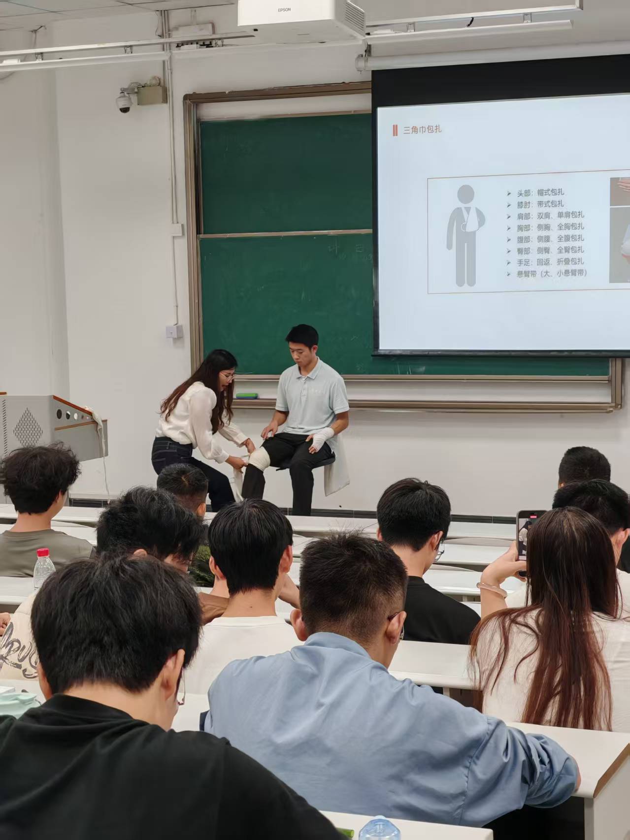 为进一步提升学生志愿者的专业救护技能,强化对常见运动创伤的应急处置能力,2025年10月9日,体育学院团委组织开展2023级学生志愿者创伤救护专项培训。本次培训邀请学院郭聪老师担任主讲。