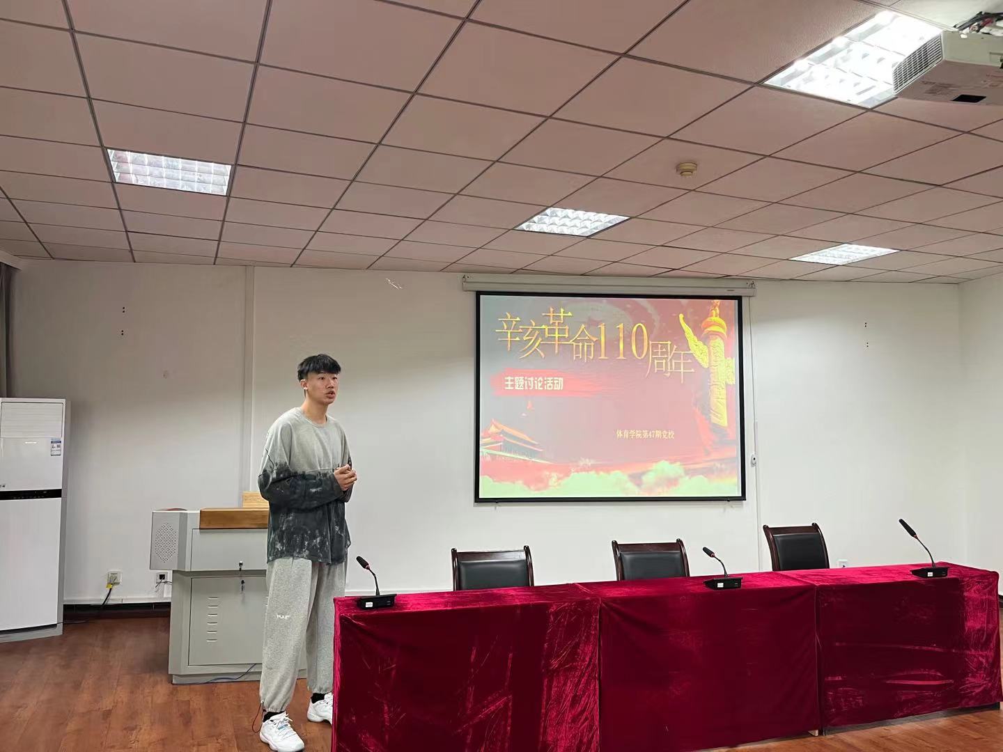 2021年10月19日星期二13:00,体育学院第47期全体党校学员在4C612教室举行了第一次主题讨论会。此次会议的主题是《辛亥革命110周年》,讨论会由党校班长王浩旭主持。