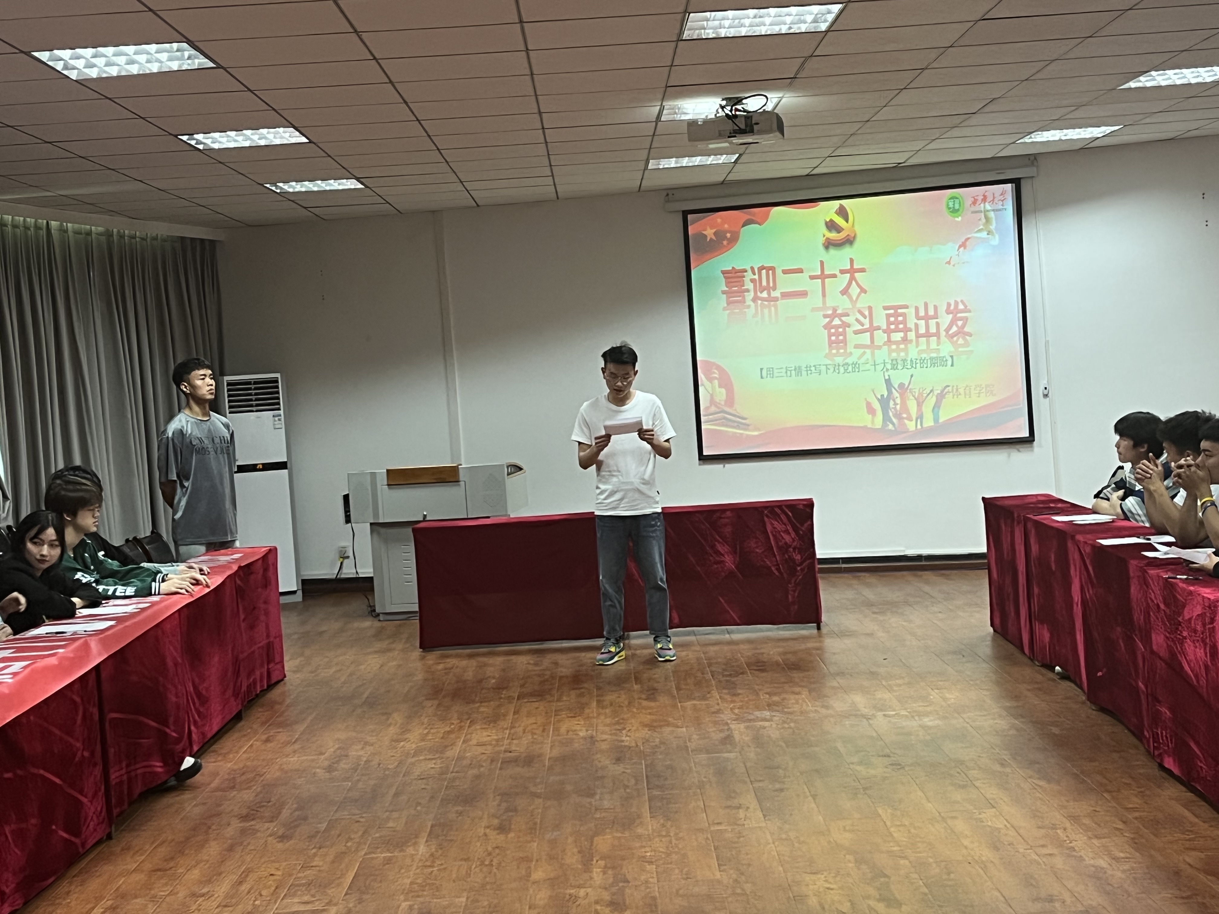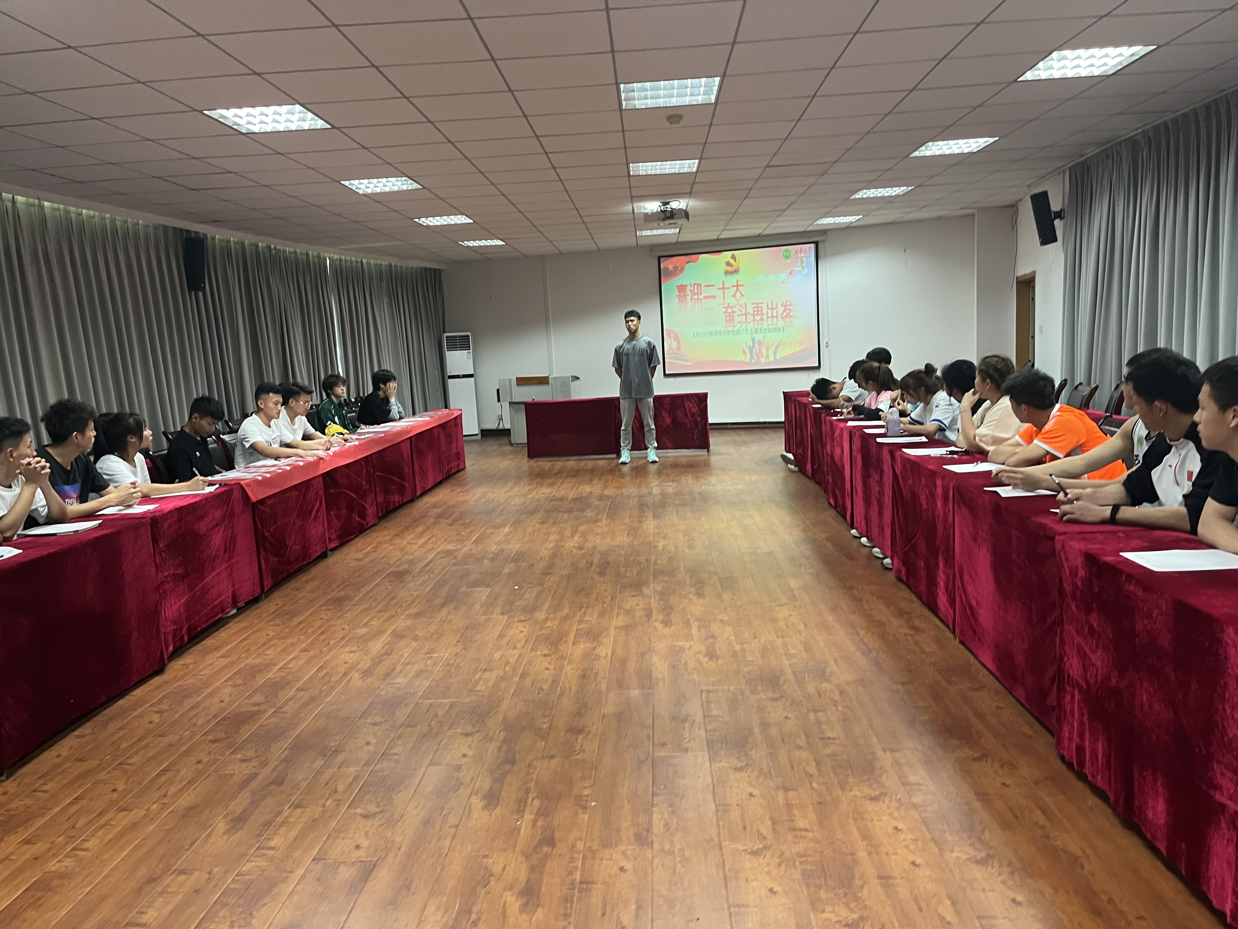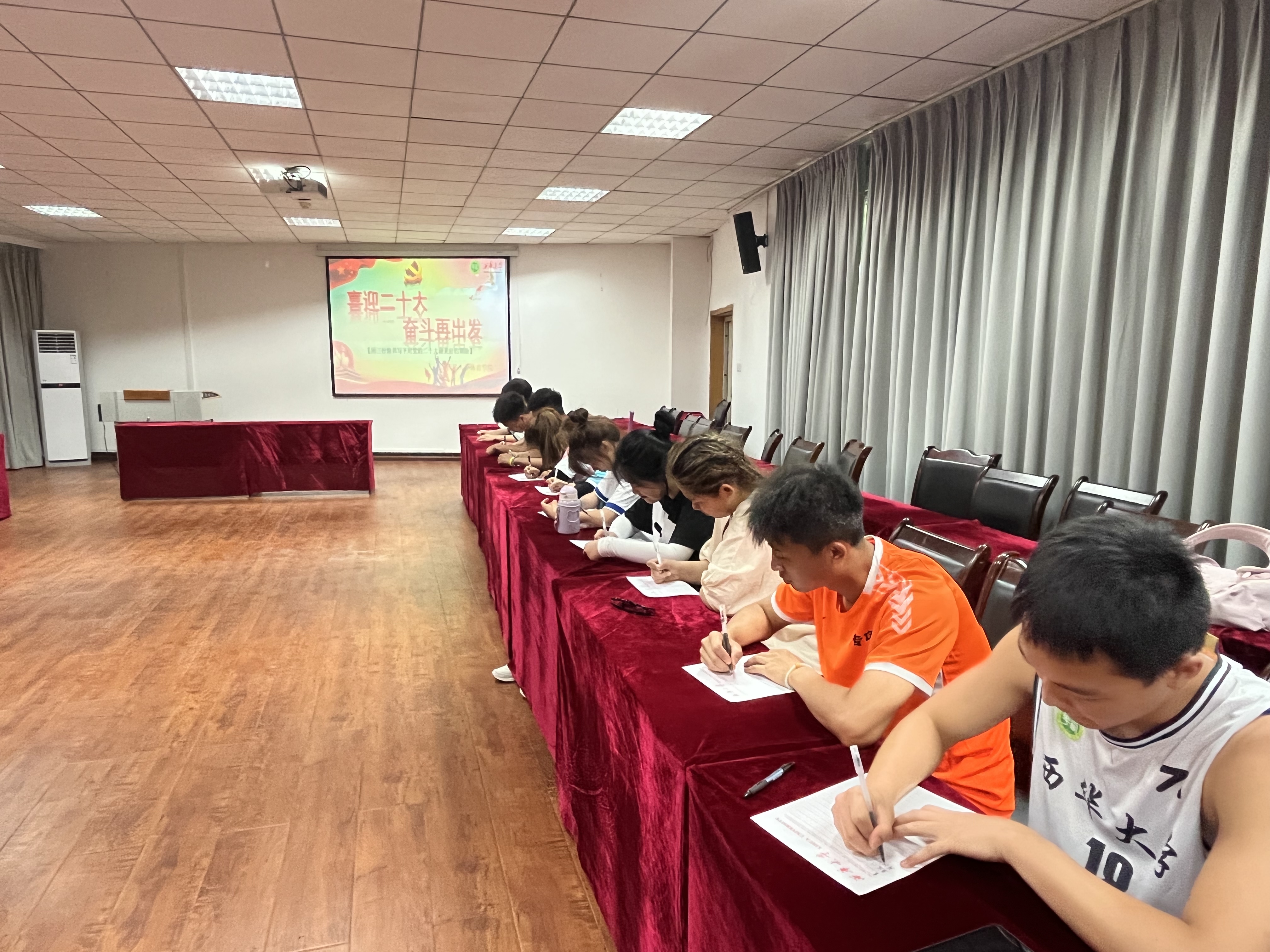 4月28日,体育学院第四十八期入党积极分子培训班学员在4C612召开了“喜迎二十大,奋斗再出发”的主题实践活动。学员们纷纷用“三行情书”来表达对党最衷心的热爱和对祖国最美好的祝愿。