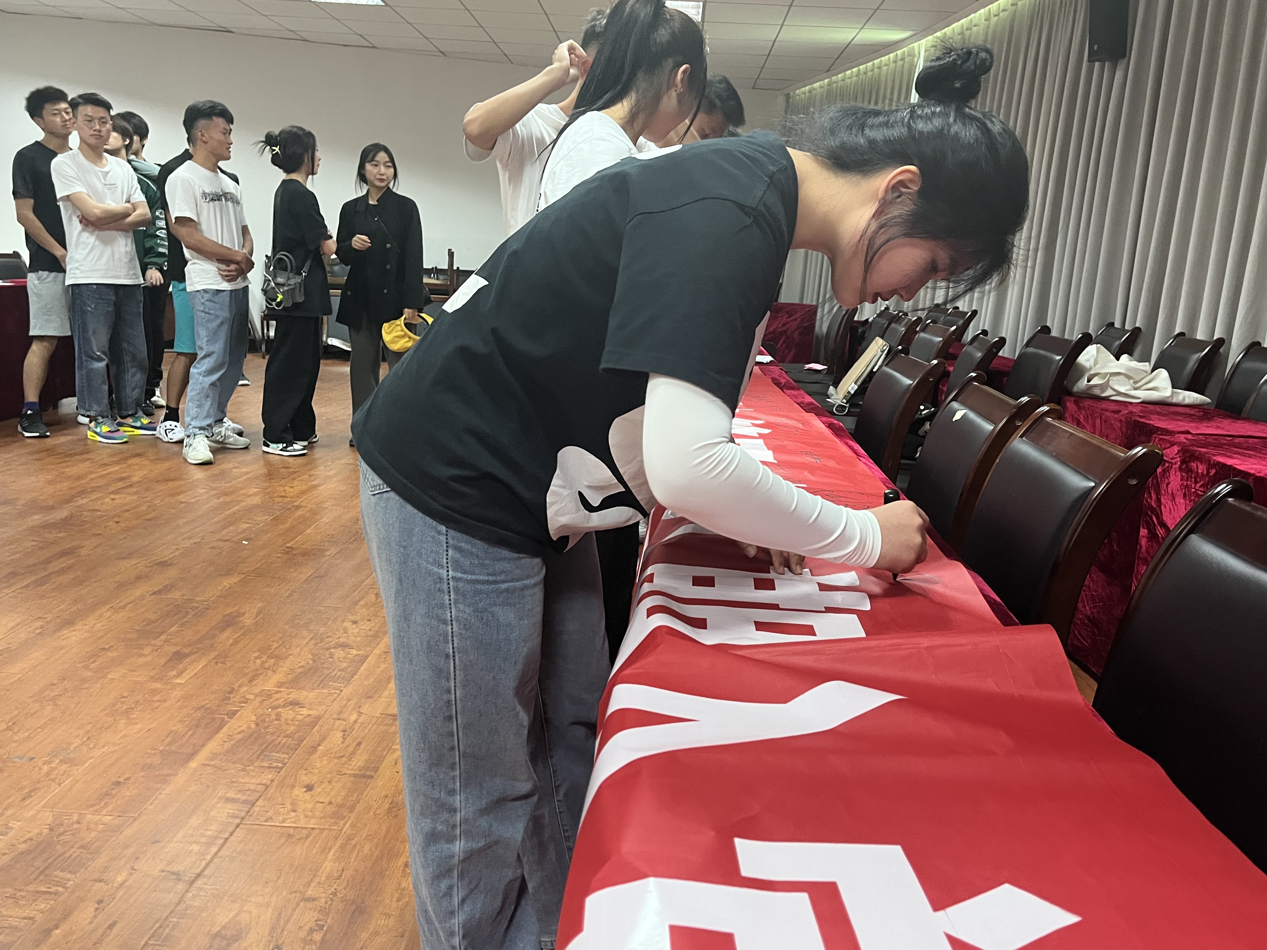 活动最后,培训班的学员们在横幅上签下自己的名字。本次活动的结束也代表着48期党校培训班集中学习的结束,但学员们纷纷表示学习的路程并没有终止,任重而道远,会在未来的生活学习中以身作则,在各个方面争取起到先锋模范作用。