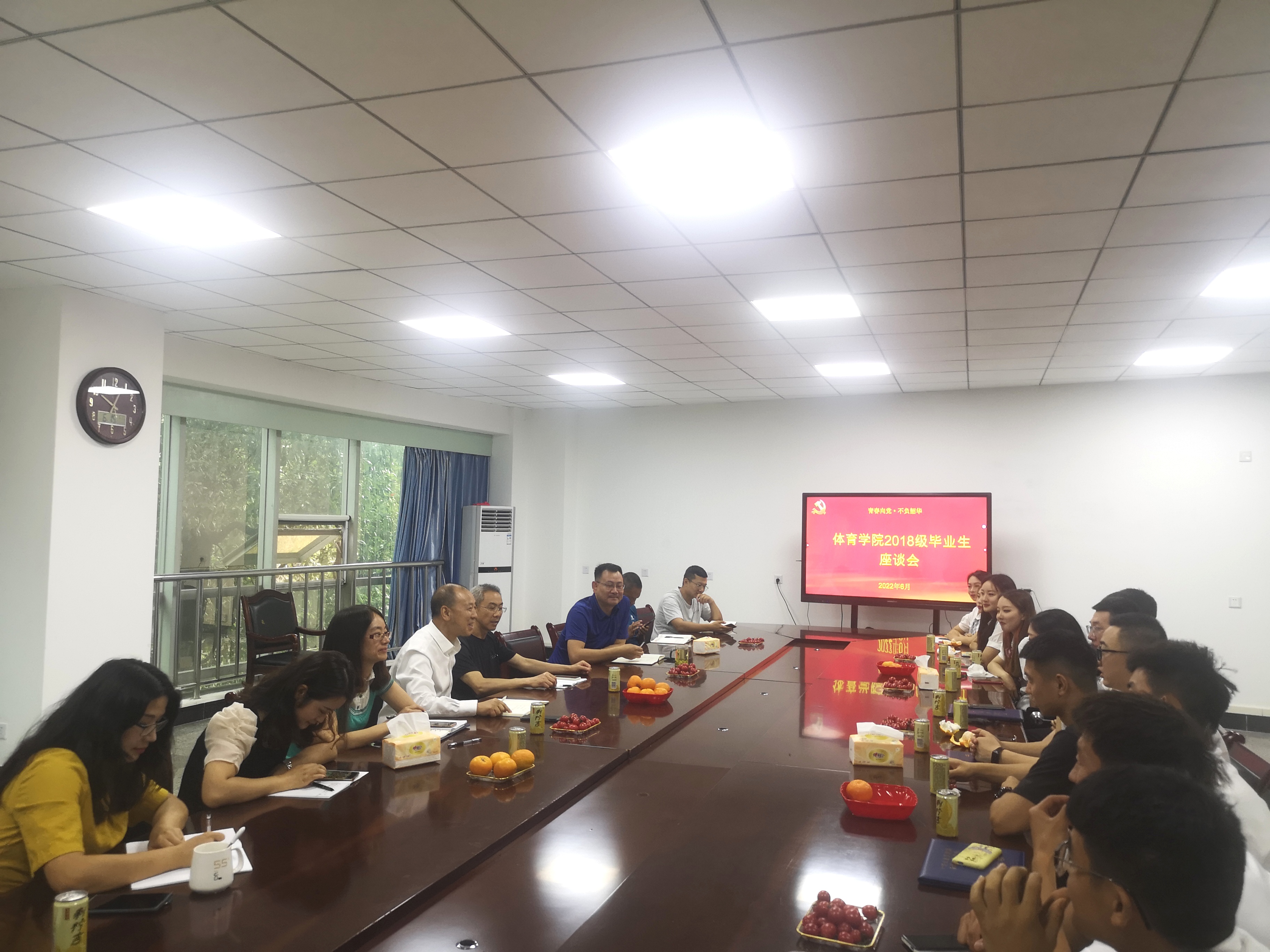 6月15日上午,体育学院在4C205组织召开2018级毕业生座谈会,学院全体党政领导、各系部负责人、毕业班辅导员及部分毕业生代表参与此次座谈会,会议由学院党委副书记钟灵波主持。