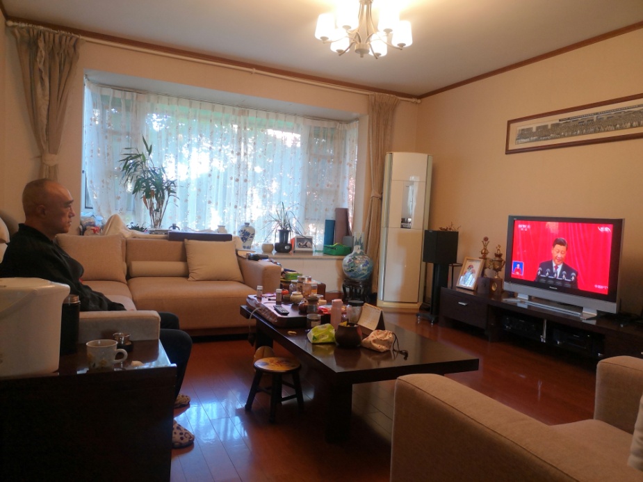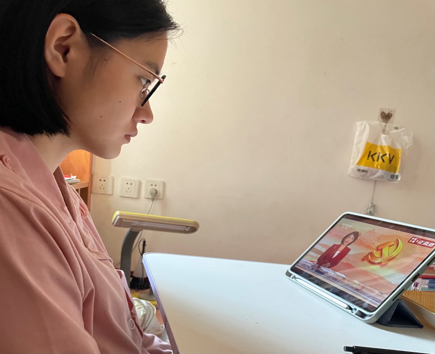 师生通过电视或网络的形式观看直播: