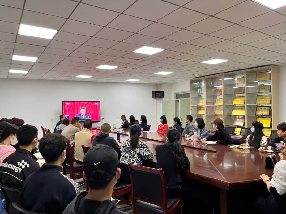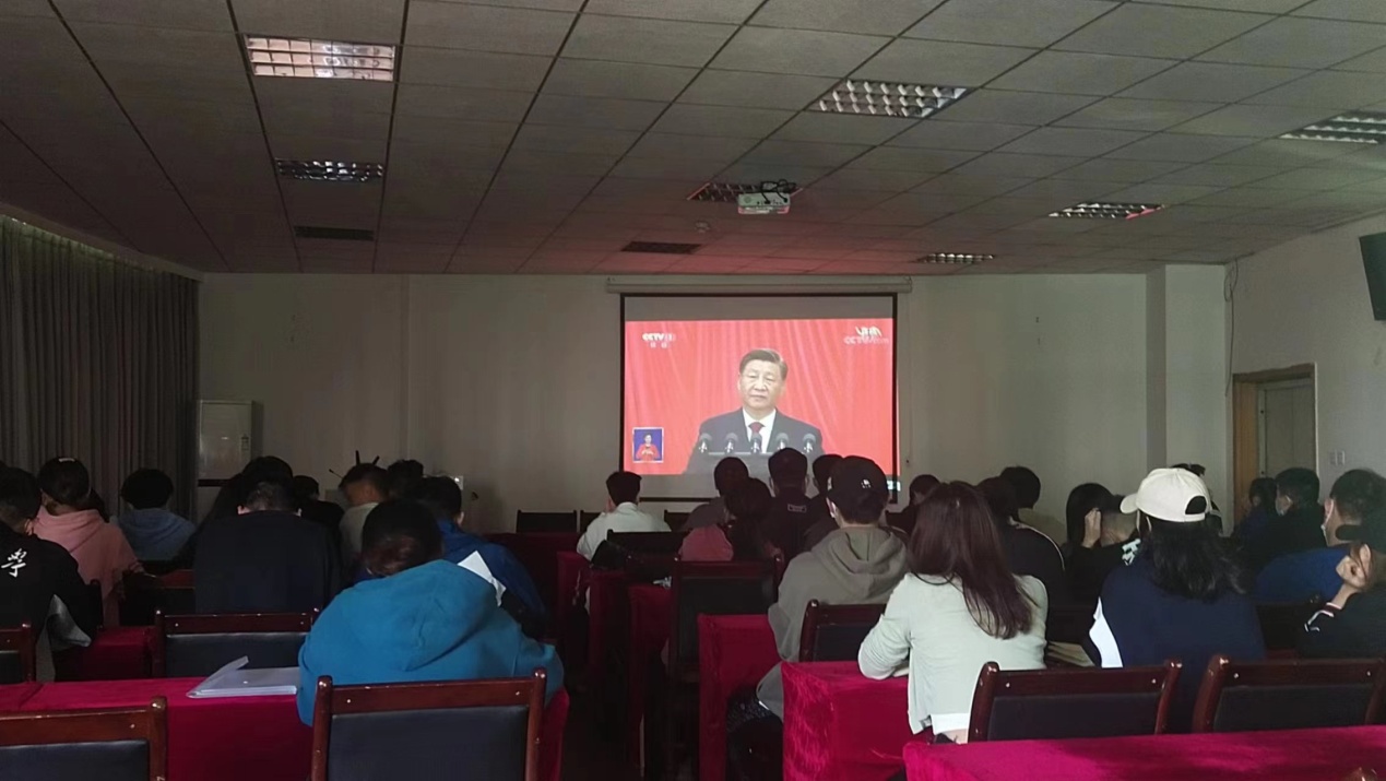 中共中央总书记、国家主席、中央军委主席习近平代表十九届中央委员会向大会及全党全国各族人民作报告。在学院会议室集中收看直播的师生代表态度严肃,思想端正,边看边做笔记,认真学习领会大会精神,时刻牢记报告中所体现的“为全面推进中华民族的伟大复兴而奋斗”二十大精神。体院师生们将继续聚焦精神学习,进一步提高思想认识,坚定不移地沿着习近平总书记指引的奋斗方向砥砺前进。