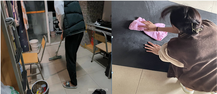 杨方虹同学说:“寝室的劳动让我们学会了怎么合理的分工四个人的工作,不仅让我们的寝室更加干净,还使我们有了更好的生活和学习环境。打扫的过程让我们更加珍惜、爱护寝室卫生和寝室财产。”