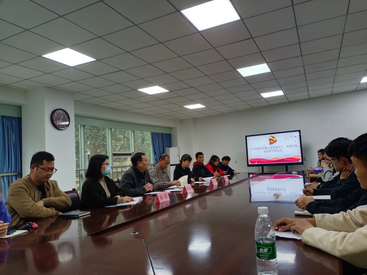3月31日,体育学院2023年春季学期入党积极分子、发展对象培训班开班仪式在4C-205举行,学院党委书记张彦、党委副书记钟灵波、专职组织员姚志媛、学工办主任郭聪以及党校全体学员参会。开班仪式由钟灵波主持。