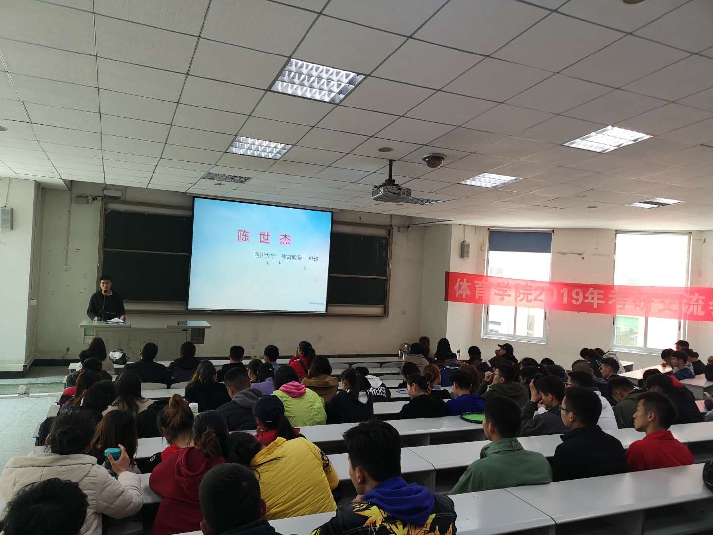 本次交流会邀请了毕业于体育学院,目前正在四川大学、成都体育学院等高校攻读研究生的几位校友回母校分享。在四川大学读研的陈世杰同学分享了自己备考的过程以及各个科目复习的心得体会,同时分享了在研究生学习阶段的感受以及自身的进步。在成都体育学院读研的李梅同学重点分享了“为什么读研”“读研学到了什么”,她以自身的奋斗和成长,激励着在座的同学们:不断的挑战自我,突破自我,在差距和竞争中寻求自我价值的实现,以更快、更高、更强的体育精神勉励和要求自己。