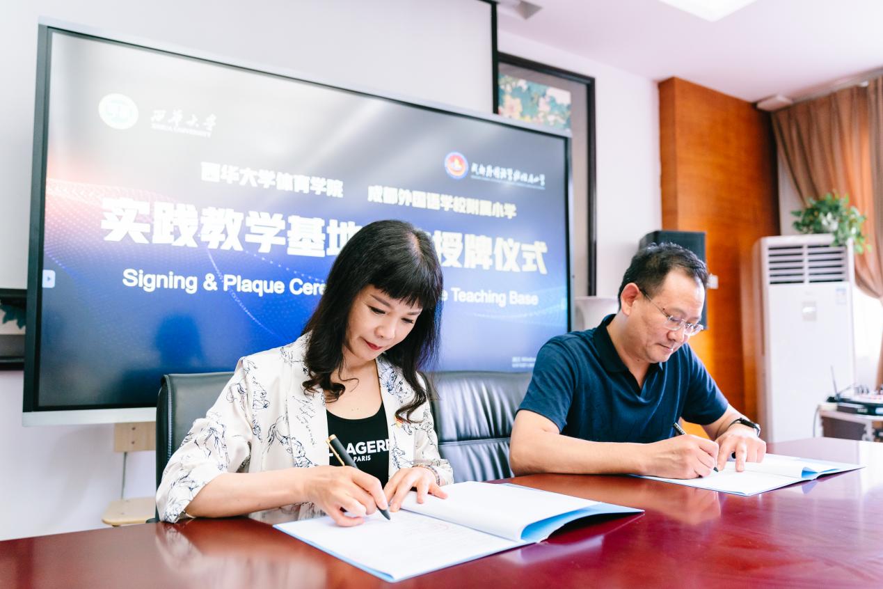 2023年6月13日,我院与成都外国语学校附属小学共建“实践教学基地”签约授牌仪式在成都外国语学校附属小学(百草路校区)举行。